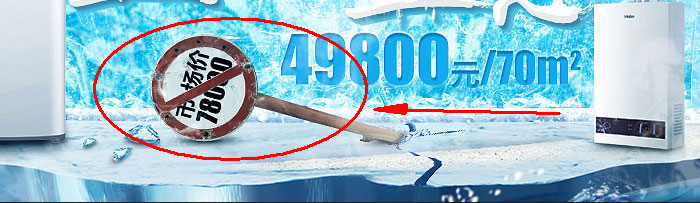 细节7:倒下的路牌。倒下的路牌为禁止标志,上边写着“市场价78000”,且紧靠498000元/70m2,暗示着我们的产品,相对于市场价将会更有优势,同时增加了页面的故事性。路牌的制作为:禁止标志与木棍组拼接而成。