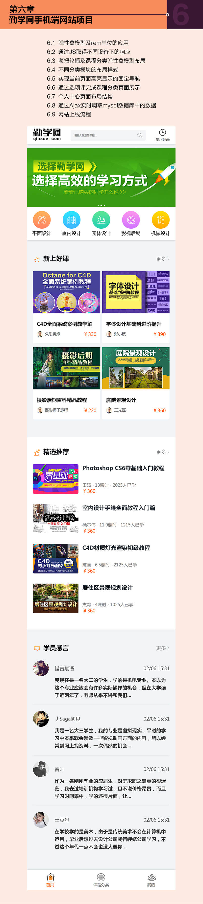 小编:本套《WEB前端实战高级教程》涵盖的知识点有:HTML5+CSS3新特性,音视频标签,CSS3动画,响应式布局,Boostrap框架运用,以及移动端手机布局,域名购买,上线调试等。是一套真正的从代码到上线的完整Web前端实战教程。